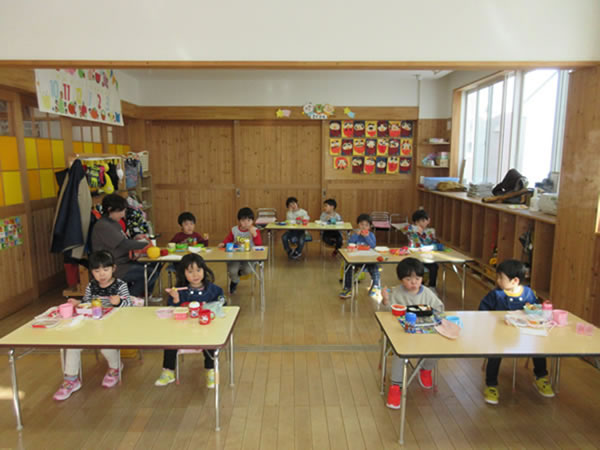 | 持ち物 | ランチョンマット(敷物)、箸(スプーン・フォーク必要に応じて)、おしぼり(濡らして)、コップ(割れないもの)、歯ブラシ(歯磨き粉は不要) ※飲み物は各自持参の水筒を使用 |